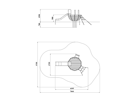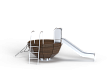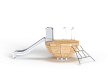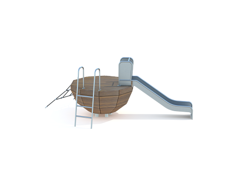 Комплкс выполнен из металлического каркаса покрытого в два слоя порошковой полимерной краской, бруса выполненого из лиственницы, тщательно отшлифованного и обладающего высочайшей прочностью. Деревянные элементы покрыты специальной пропиткой, содержащую антисептики и обеспечивающую ультрафиолетовую защиту от солнечного воздействия. Горки и лестницы выполнены из нержавеющей стали. Сетки и канаты изготовлены из многожильного армированного износостойкого каната.