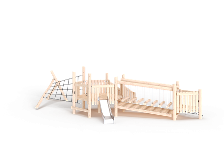 Первый - деревянные столбы и брёвна выполнены из лиственницы, имеют естественную природную форму, тщательно отшлифованы и обладают высочайшей прочностью.