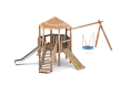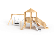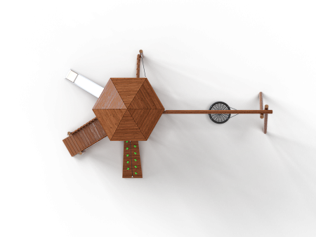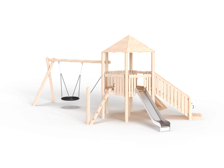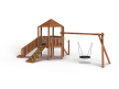 Первый - деревянные столбы и брёвна выполнены из лиственницы, имеют естественную природную форму, тщательно отшлифованы и обладают высочайшей прочностью.