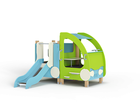 Машина выполнена из фанерных элементов в виде кабины и кузова.  Кабина имеет вход с двух сторон, по две ступеньки и по две ручки с каждой стороны, вращающийся руль и сидение. Кузов - открытая площадка со входом в виде альпинистской стенки и горкой. На бортах кузова прикреплены декоративные элементы в виде слесарных инструментов.
