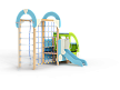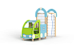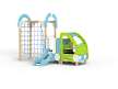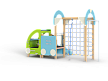 Пожарная машина состоит из кабины, кузова, горки и вынесенного спортивного комплекса. Вынесенный спортивный комплекс состоит из шеста, каната, шведской стенки, рукохода, сетки полипропиленовой для лазания и фанерных декоративных элементов. Кабина имеет вход с двух сторон, по две ступеньки и по две ручки с каждой стороны, вращающийся руль и сидение. Кузов - открытая площадка имеет один вход и горку. Один борт имеет художественно оформленную поверхность в тематике экстренных служб.