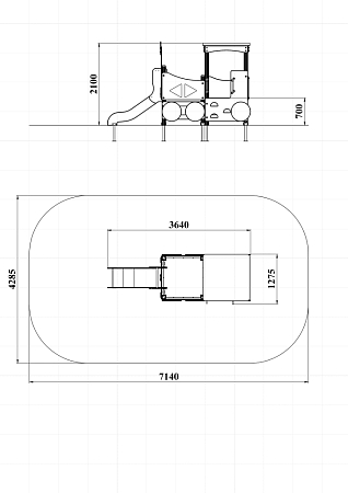 Паровозик состоит из кабины с крышей и котла с горкой. Кабина имеет вход в виде альпинистской стенки и две вспомогательные ручки, фанерное ограждение и крыша. Котел - открытая площадка с горкой, декоративной аркой и фанерным ограждением с художественным оформлением. Снизу по бокам расположены декоративные колеса.