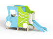 Самосвал состоит из горки, крыши, ограждений в виде деталей кузова самосвала, лавочки, руля, ручек и декоративных фанерных элементов.