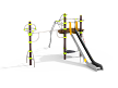 Универсальный комплекс состоит из башни с жесткой площадкой и площадкой подвесной, каруселью, горкой и гимнастических элементов. Столбы башни выполнены из древесно-полимерного композита (ДПК) диаметром 125 мм, имею профиль с канавками. Все металлические гимнастические элементы и карусель выполнены из нержавеющей стали с антивандальными и безопасными соединениями между собой. Сетки и канаты изготовлены из многожильного армированного износостойкого каната. Площадки и сидение карусели выполнены из экструдированного высокомолекулярного полиэтилена, борта и ограждения горки выполнены из HPL пластика. .