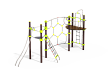 Универсальный комплекс состоит из двух башен и гимнастических элементов. Одна башня с подвесной площадкой, вторая башня с жесткой площадкой. Башни соединены сеткой. Столбы башни выполнены из древесно-полимерного композита (ДПК) диаметром 125 мм, имею профиль с канавками. Все металлические гимнастические элементы выполнены из стали с оцинкованным покрытием, с антивандальными и безопасными соединениями между собой. Оцинковка металла производится методом электрохимической гальванизации. Сетки и канаты изготовлены из многожильного армированного износостойкого каната. Площадки выполнены из экструдированного высокомолекулярного полиэтилена.