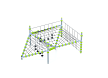 Комплекс состоит из столбов выполненных из древесно-полимерного композита (ДПК) диаметром 125 мм, имеют профиль с канавками. Все металлические элементы выполнены из стали с оцинкованным покрытием, с антивандальными и безопасными соединениями между собой. Оцинковка металла производится методом электрохимической гальванизации. Сетки и канаты изготовлены из многожильного армированного износостойкого каната. Различных эелементов выполненых из HDPE пластика.