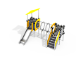 Универсальный комплекс состоит из двух башен с площадками, соединенных прозрачным пластиковым тунелем. Одна башня с крышей, ограждением и горкой, вторая башня с лестницей и ограждением. Все металлические элементы башен выполнены из стали с оцинкованным покрытием, с антивандальными и безопасными соединениями между собой. Оцинковка металла производится методом электрохимической гальванизации. Скат горки выпонен из нержавеющей стали. Площадки, стенки, крыша лестница, борта и ограждения горки выполнены из HPL пластика..
