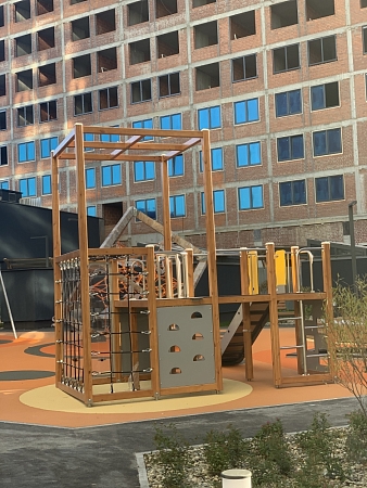 Универсальный комплекс состоит из двух сдвоенных башен с площадками и гимнастического оборудования с края одной из башен. На башнях установлены горка, альпинистские стенки и площадка с круглым лазом. Все металлические гимнастические элементы и выполнены из нержавеющей стали. Все деревянные элементы изготовлены из тщательно отшлифованной древесины и окрашены высококачественным лаковым покрытием. Площадки, альпинистские стенки, борта и ограждения горки выполнены из HPL пластика. Сетки и канаты изготовлены из многожильного армированного износостойкого каната.
