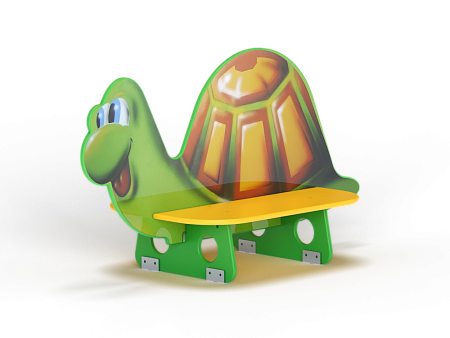 Фанерная лавочка в форме черепахи с художественным оформлением.