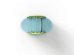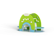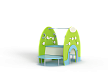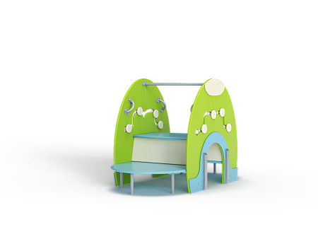 Лазелка состоит из двух боковых стенок с отфрезерованными глухими и сквозными пазами. В глухие пазы вставляются фанерные элементы в виде трех ступенек и двух стенок. В сквозные пазы вставлены передвижные развивающие элементы. С внешней стороны на боковые стенки крепятся декоративные фанерные накладки. С внутренней стороны крепятся ручки и перекладина.