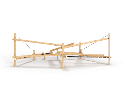 Первый - деревянные столбы и брёвна выполнены из лиственницы, имеют естественную природную форму, тщательно отшлифованы и обладают высочайшей прочностью.