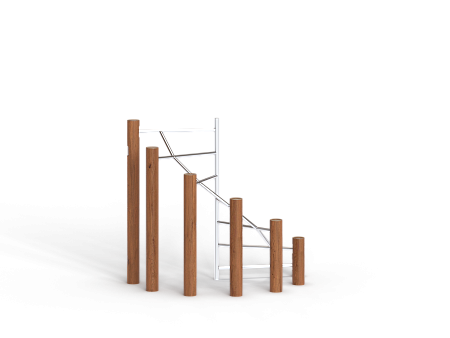 Первый - деревянные столбы и брёвна выполнены из лиственницы, имеют естественную природную форму, тщательно отшлифованы и обладают высочайшей прочностью.
