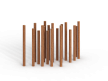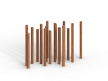 Второй — деревянные столбы и брёвна выполнены из клееной сосновой древесины с последующим оцилинриванием, имеет ровную цилиндрическую поверхность.