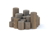 Второй — деревянные столбы и брёвна выполнены из клееной сосновой древесины с последующим оцилинриванием, имеет ровную цилиндрическую поверхность.