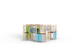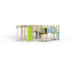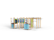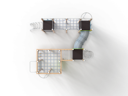 Спортивный комплекс состоит трёх башен, соединенных между собой сеткой полипропиленовой и изогнутой трубой переходом пластиковым. Одна из башен соединена со спортивным комплексом. На башнях и на спорткомплексе установлены перекладины усиленные, лиана, шест, шест спираль, перекладины, ручки вспомогательные, альпинистская стенка, перекладины с канатом, сетки полипропиленовые, лестница полипропиленовая, перекладина с кольцами гимнастическими и турник навесной