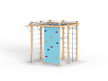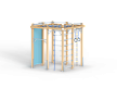 Спортивный комплекс оборудован вертикальной полипропиленовой сеткой, шестом, шведскими стенками, кольцам гимнастическими, полипропиленовой лестницей, канатом, перекладинами, фанерной стенкой с альпинистскими камнями и приставным турником