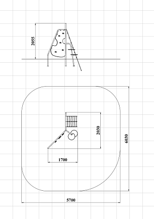 Спортивный комплекс состоит из сборного металлокаркаса к которому крепятся фанерная стенка с альпинистскими камнями, две фанерные круглые ступени и сетка полипропиленовая наклонная