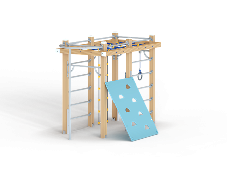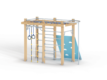 Спортивный комплекс оборудован шестом, шведскими стенками, кольцами гимнастическими, лестницей полипропиленовой, горизонтальной сеткой полипропиленоыой, перекладинами и альпинистской стенкой наклонной.