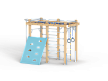 Спортивный комплекс оборудован шестом, шведскими стенками, кольцами гимнастическими, лестницей полипропиленовой, горизонтальной сеткой полипропиленоыой, перекладинами и альпинистской стенкой наклонной.
