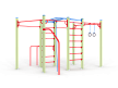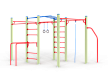 Спортивный комплекс оборудован рукоходом изогнутым, шведскими стенками, брусьями изогнутыми, кольцам гимнастическими, канатом, перекладинами, стойкой упорной.