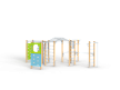 Спортивный комплекс оборудован рукоходом, рукоходом изогнутым, рукоходом с гимнастическими кольцами, шведскими стенками, брусьями межстолбовыми, кольцам гимнастическими, канатом, шестом, перекладинами, альписнистскими стенками, фанерной стенкой с круглым вырезом, ручкам вспомогательными и турником приставным.