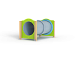 Спортивный комплекс состоит из пластиковой трубы перехода на несущих деревянных столбах.