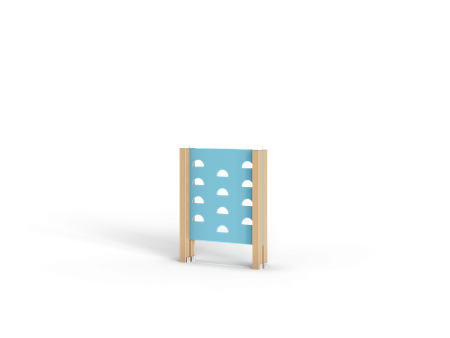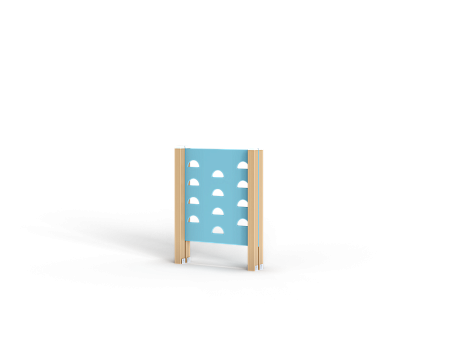 Спортивный комплекс выполнен в виде фанерной альпинистской стенки, установленной на несущих деревянных столбах.
