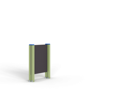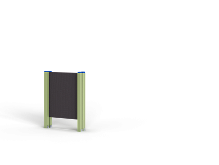 Спортивный комплекс выполнен в виде стенки для рисования из ламинированной влагостойкой фанеры, установленной на несущих деревянных столбах.