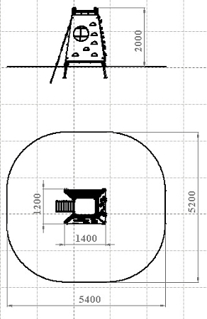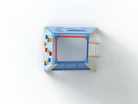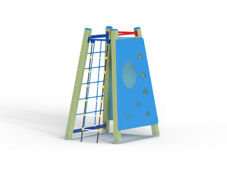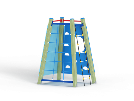 Спортивный комплекс представлен в форме трапеции, состоит из полипропиленовой сетки, полипропиленовой лестницы, альпинистской стенки и стенки с альпинистскими камнями.