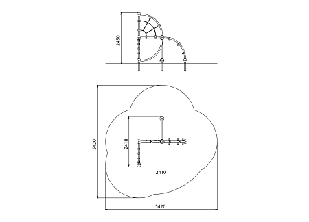Комплекс выполнен в виде комбинации сеток, рукохода и металлических элементов из стали с оцинкованным покрытием, с антивандальными и безопасными соединениями между собой. Оцинковка металла производится методом электрохимической гальванизации. Сетки изготовлены из многожильного армированного износостойкого каната.