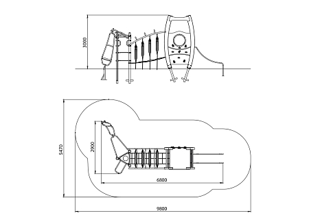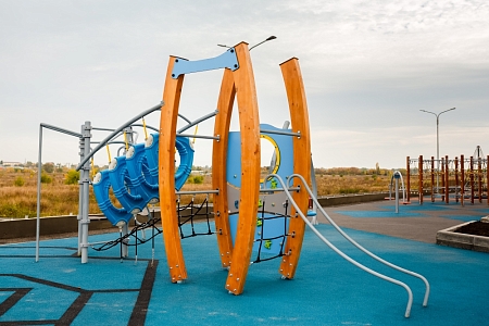 Универсальный комплекс состоит из гимнастических элементов и башни с подвесной площадкой и подвесной площадкой с лазом. Все металлические гимнастические элементы и столбы башни выполнены из стали с оцинкованным покрытием. Оцинковка металла производится методом электрохимической гальванизации. Деревянные стойки выполнены из тщательно отшлифованной древесины высочайшей прочности и окрашены высококачественным лаковым покрытием. Сетки и канаты изготовлены из многожильного армированного износостойкого каната. Площадки выполнены из экструдированного высокомолекулярного полиэтилена, стенки для лазания выполнены из HPL пластика. Лазы с отверстиями выполнены из высококачественного пластика.