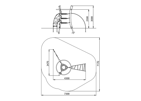 Универсальный комплекс состоит из гимнастического оборудования и трех изогнутых стоек с подвесными пластиковыми лазами, установленных между ними. Все металлические гимнастические элементы выполнены из нержавеющей стали. Деревянные стойки выполнены из тщательно отшлифованной древесины высочайшей прочности и окрашены высококачественным лаковым покрытием. Стенка выполнена из HPL пластика. Лазы с отверстиями выполнены из высококачественного пластика.