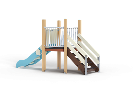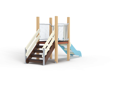 Комплекс состоит из башни с горкой с высотой ската 900 мм, лестницы и двух металлических ограждений