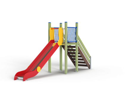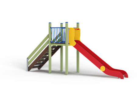 Комплекс состоит из башни с горкой с высотой ската 1500 мм, лестницы и двух металлических ограждений