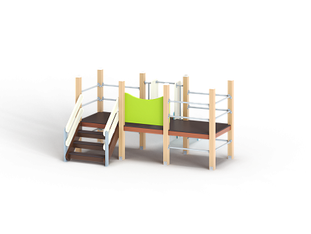 Манеж состоит из башни с горкой с высотой ската 700 мм, лестницы, металлических перекладин и фанерного ограждения.