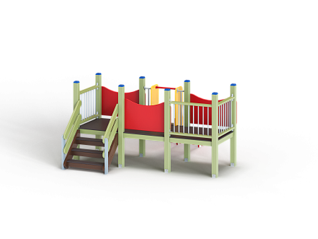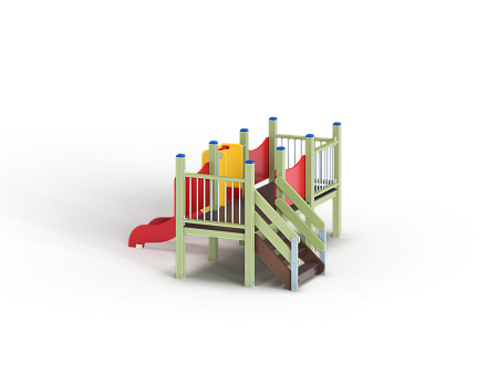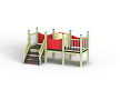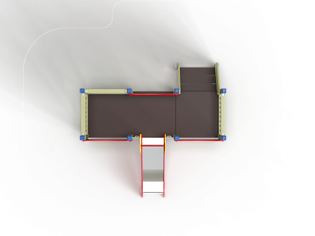Манеж состоит из башни с горкой с высотой ската 700 мм, лестницы и фанерных ограждений по периметру.