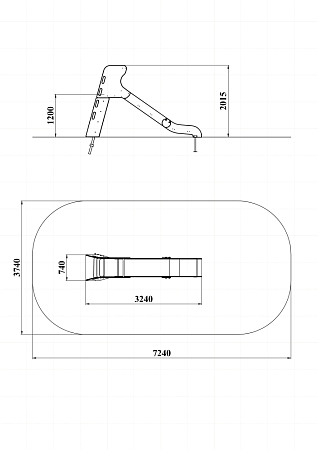 Горка состиоит из ската высотой 1200 мм, металлической лестницы с фанерными перилами с ступенями и площадкой из влагостойкой противоскользящей ламинированной фанеры.