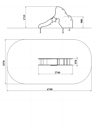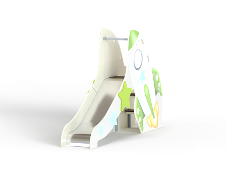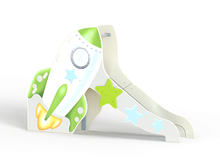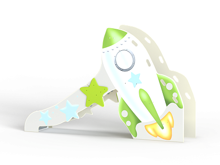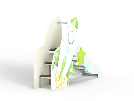 Горка с высотой ската 900 мм имеет перила в виде ракеты с ручной художественной росписью.