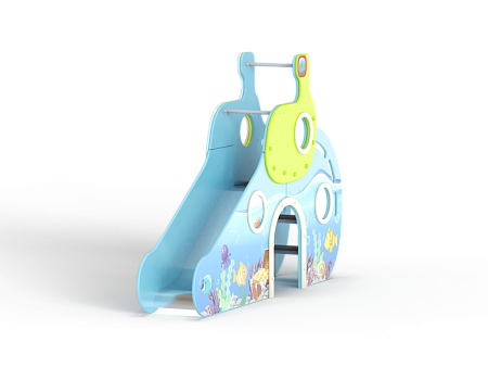 Горка с высотой ската 900 мм выполнен в виде подводной лодки с ручной художественной росписью.