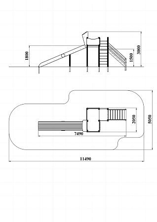 Комплекс состоит из башен с зимней горкой с высотой ската 1800 мм, лестницы, перекладин и фанерных ограждений.