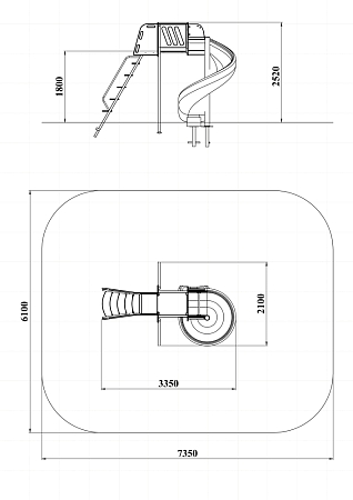 Горка пластиковая винтовая, высота ската 1800 мм. Оборудована лестницей, мостиком и опорными металлическими стойками.