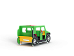 Вездеход состоит из площадки с фанерными элементами в виде кузовных деталей, ручек, вращающегося руля, металлических перекладин и сидений со спинками. За задней стенкой вездехода крепится фанерное сидение.