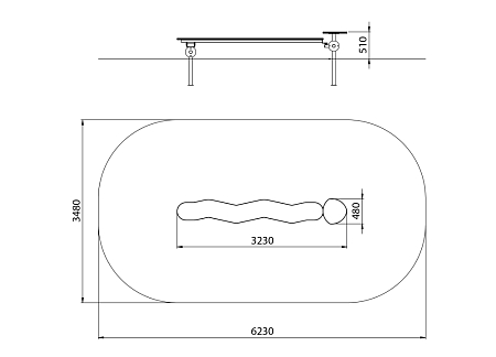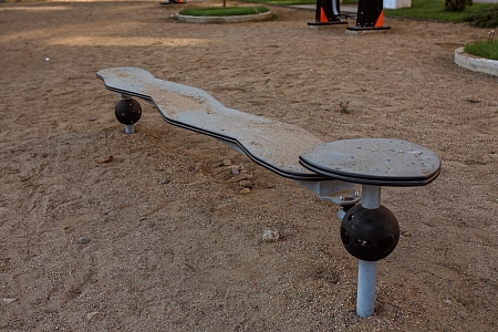 Качалка в виде змейки состоит из металлического каркаса с оцинкованным покрытием, двух накладок и площадки из экструдированного высокомолекулярного полиэтилена. Оцинковка металла производится методом электрохимической гальванизации. Качение производится при помощи особого шарнира и шаровой опоры. При работе шарнира исключены места трения металлических компонентов шарнира, что в свою очередь влияет на долговечность, сокращает эксплуатационные расходы и позволяет шарниру работать практически без шума.