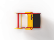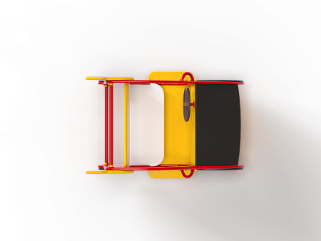 Качалка на пружине в форме машины изготовлена из фанерных элементов с ручной художественной росписью, вращающегося руля и металлических элементов с пружиной.