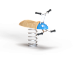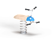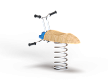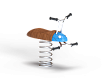 Качалка выполнена в виде жучка с ручками и подножками, раскачивающегося на пружине. Ручки и подножки выполнены из стали. Жук изготовлен из тщательно отшлифованной древесины высочайшей прочности.