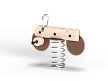 Качалка выполнена в виде бревна с ручкой, сердцевиной из HDPE пластика, пластиковой подножкой, раскачивающемся на пружине. Ручка выполнена из нержавеющей стали.