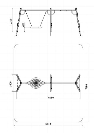 Качели состоят из четырех деревянных столбов, крепежных фанерных накладок и перекладины с прорезиненым подвесом из полипропиленового каната, сплетенного в виде гнезда.