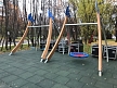 Балка качели и опорные дуги качели выполнены из стали с оцинкованным покрытием. Оцинковка металла производится методом электрохимической гальванизации. Опорные стойки качели выполнены из тщательно отшлифованной древесины высочайшей прочности и окрашены высококачественным лаковым покрытием. Декоративные накладки изготовлены из экструдированного высокомолекулярного полиэтилена. Подвес качели имеет форму гнезда. Сетки и канаты изготовлены из многожильного армированного износостойкого каната.