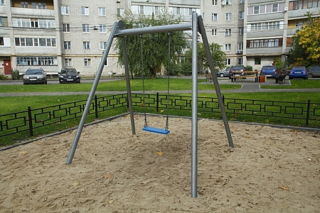 Одинарные качели изготовлены из стали с оцинкованным покрытием. Оцинковка металла производится методом электрохимической гальванизации.