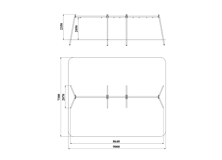 ДИО 1.407.11 Рама качелей трехпролетная гнездо и три сидения
